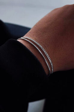 The Collection Unisex Kararmaz Ultra Ince İtalyan Silindir ve Gurmet Zincir Gümüş Çelik Bileklik