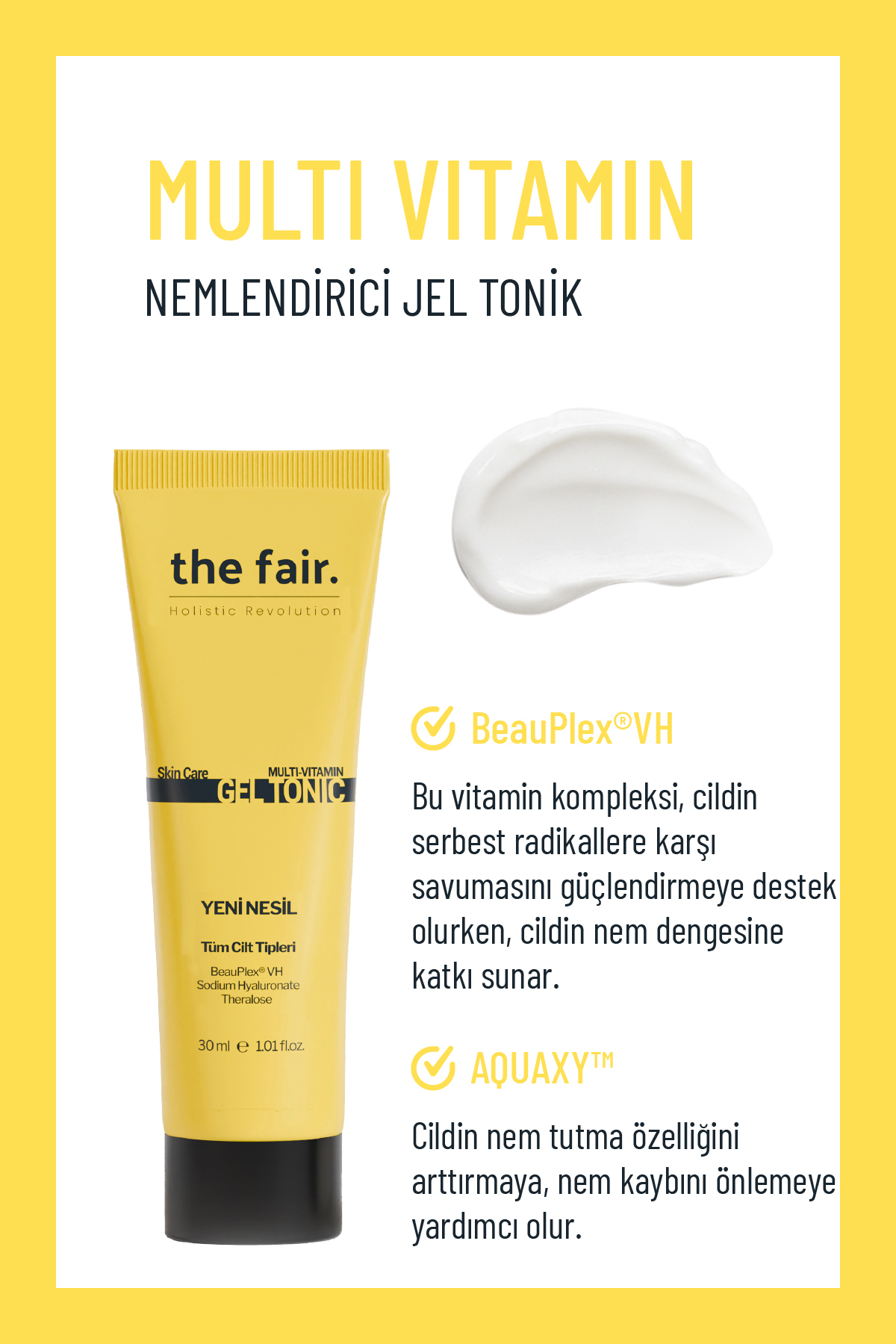 the fair. Tüm Cilt Tipleri Için Yeni Nesil Nemlendirici Multi Vitamin Jel Tonik 30 ml