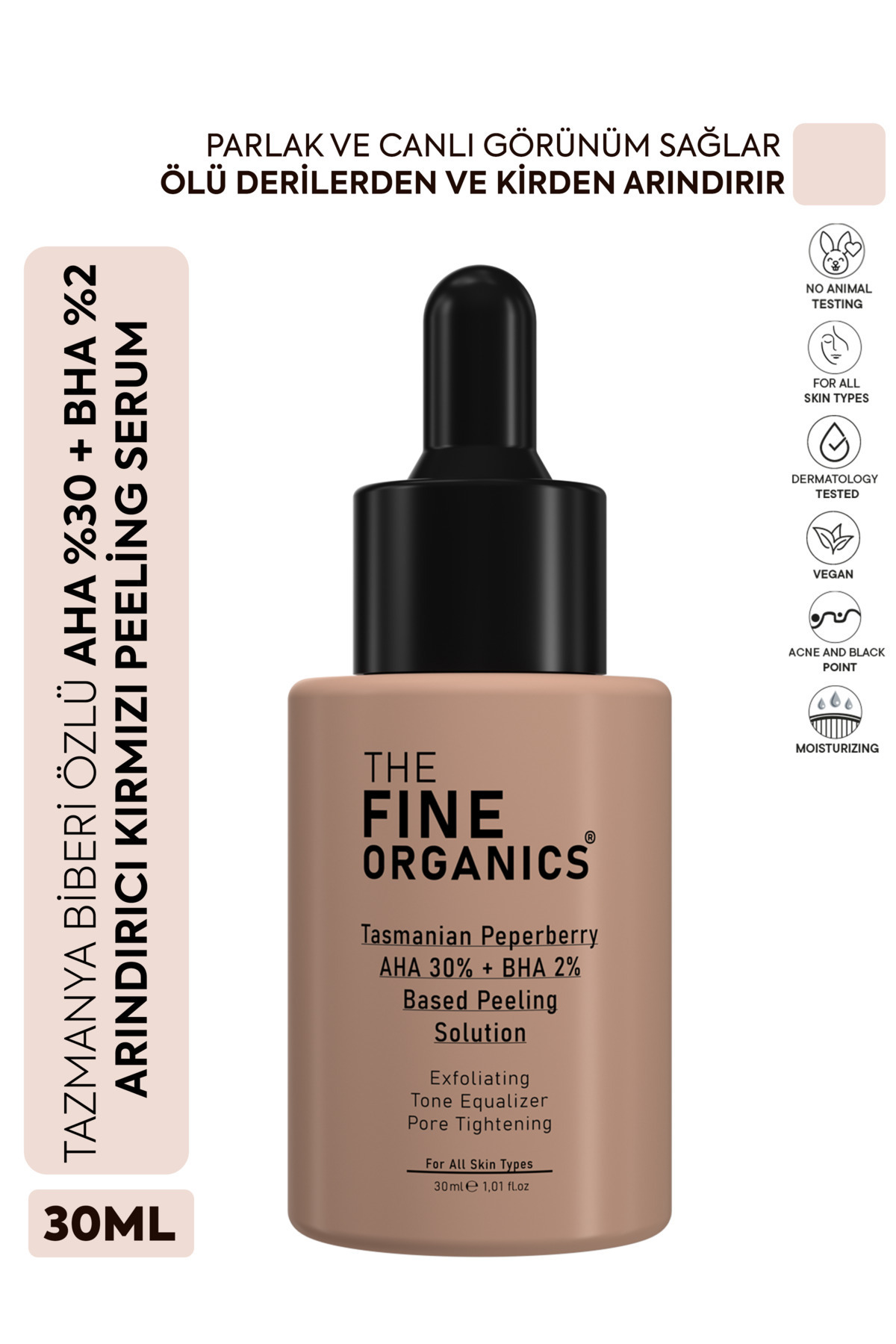 THE FINE ORGANICS Tazmanya Biberi Özlü AHA %30 + BHA %2 Cilt Tonu Eşitleyici ve Arındırıcı Kırmızı Peeling Serum