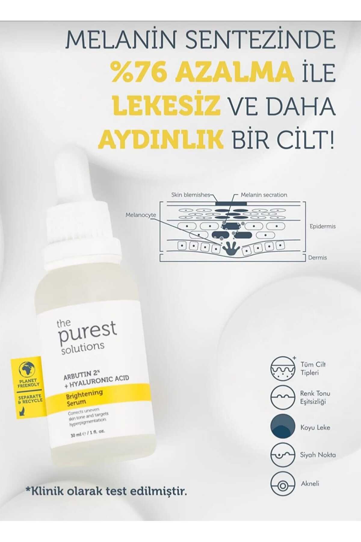 the purest solu Leke Karşıtı Arbutin Cilt Bakım Serumu 30 Ml Arbutin %2 + Hyaluronic Acid