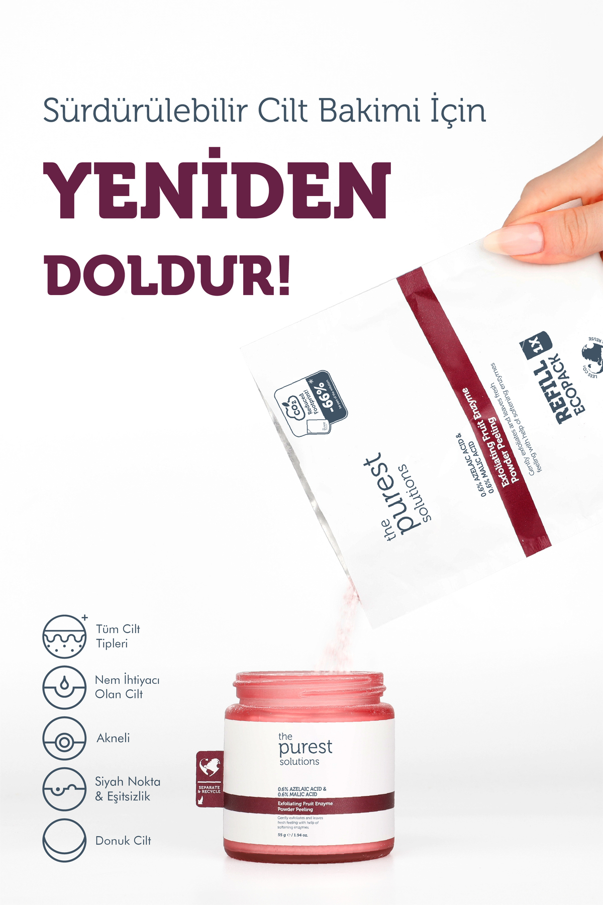 The Purest Solutions Arındırıcı ve Aydınlatıcı Enzim Peeling Toz Temizleyici 55 gr (%0,6 Azelaic Acid & Malic Acid) ürünü ucuz fiyat, hızlı kargo imkanı ile hemen sitemizden sipariş verin.