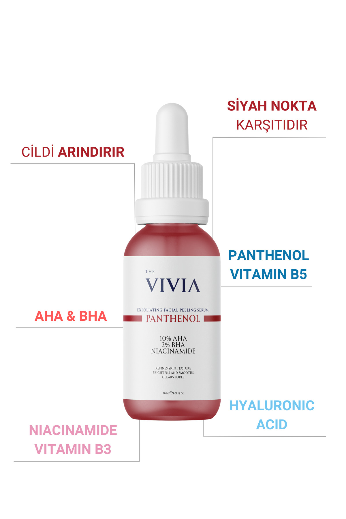 The Vivia Canlandırıcı, Cilt Tonu Eşitleyici, Tazeleyici, Gözenek Sıklaştırıcı Peeling Serum AHA & BHA, 30 ml