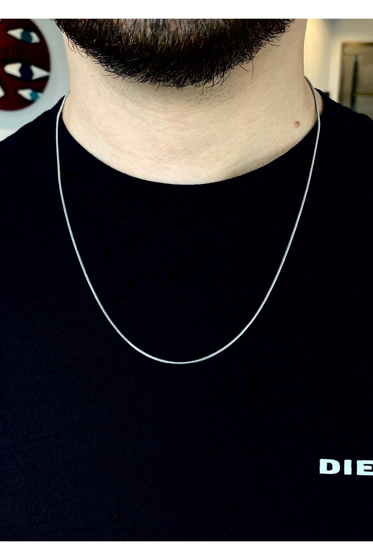 Tixy Pixy 316l Paslanmaz Çelik Yılan Zincir Gümüş Erkek Kolye