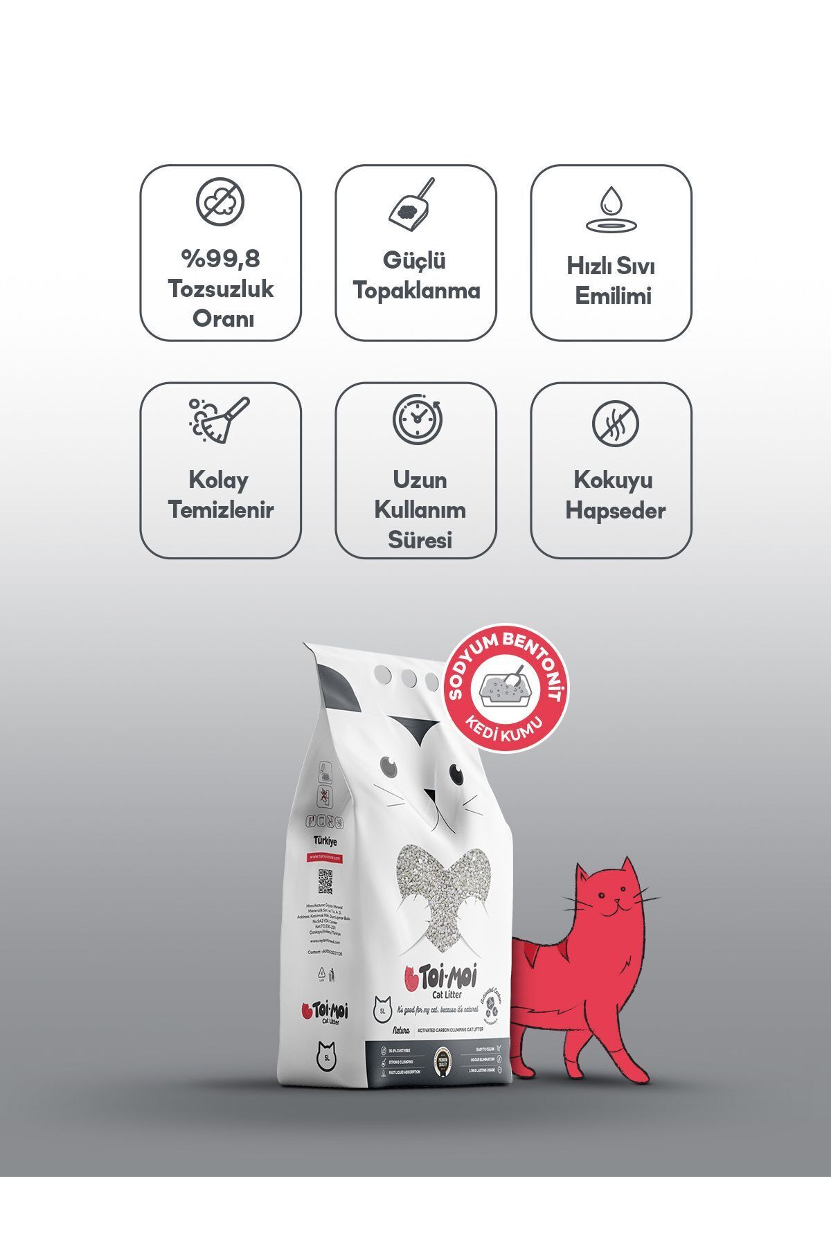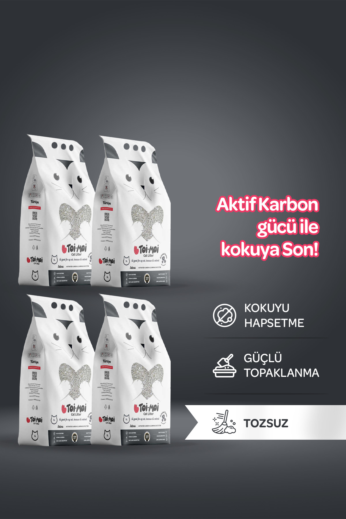 Toi Moi 4’lü Avantaj Paketi Koku Hapseden, Topaklanan,tozsuz Aktif Karbonlu Bentonit Kedi Kumu 4x5kg