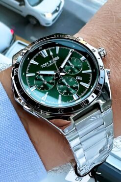 Tom Jones Erkek Kol Saati 3 Atm Su Geçirmez Yeşil Renk Çelik Kordon Bileklik Tjeg2035c3