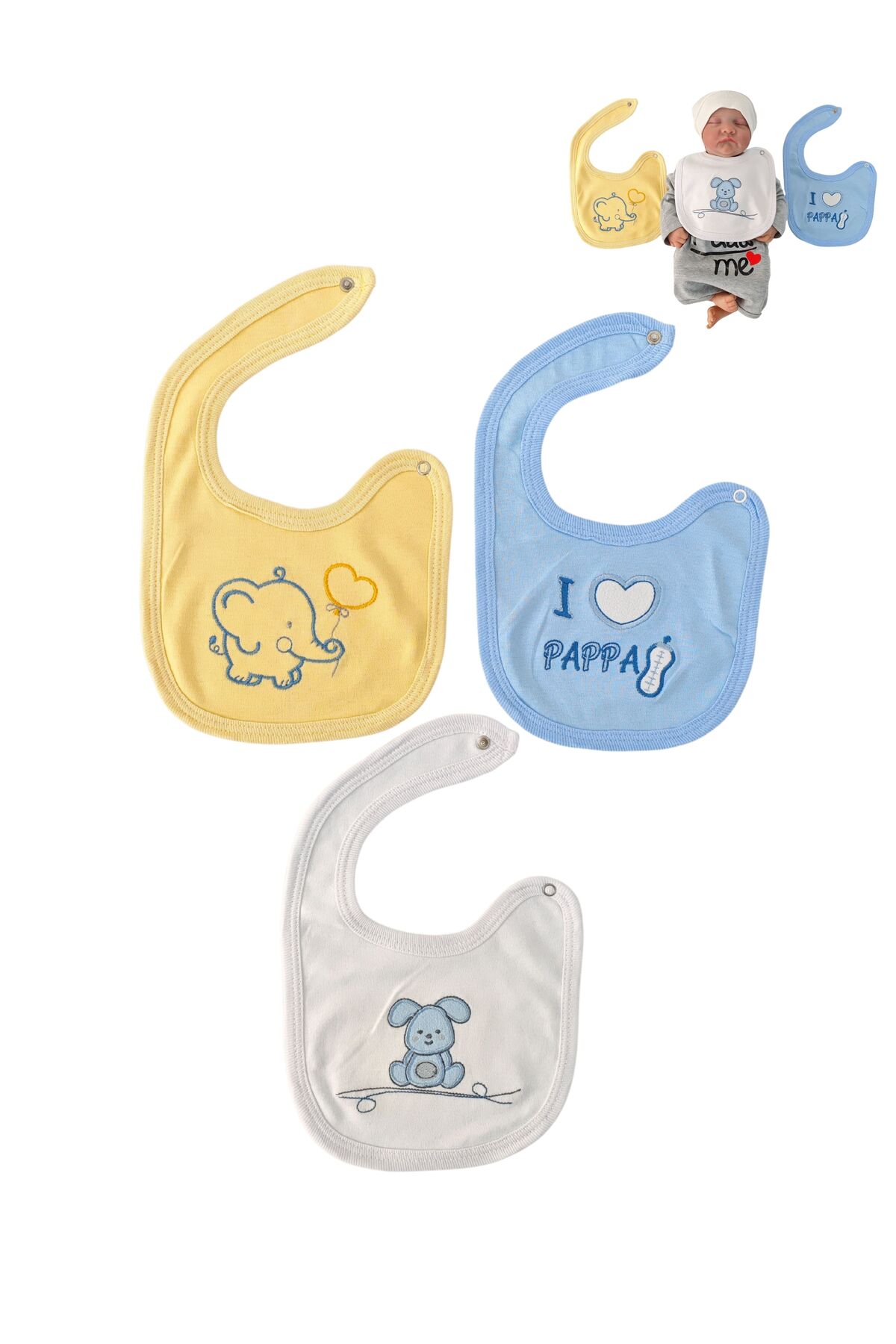 Tomuycuk %100 Pamuklu 3’lü Erkek Bebek Önlüğü Yakalık Mama Önlüğü Çift Katlı Çıtçıtlı Fular Salya Önlüğü