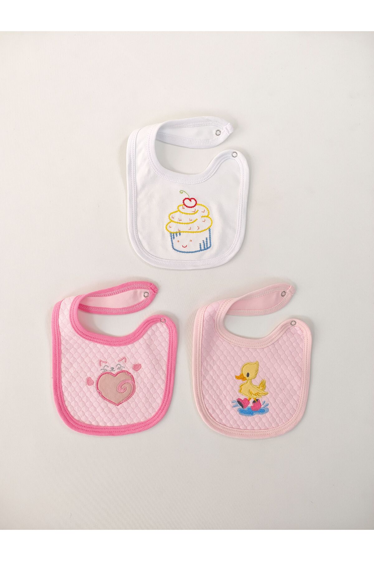 Tomuycuk %100 Pamuklu 3’lü Kız Bebek Önlüğü Yakalık Mama Önlüğü Çift Katlı Çıtçıtlı Fular Salya Önlüğü