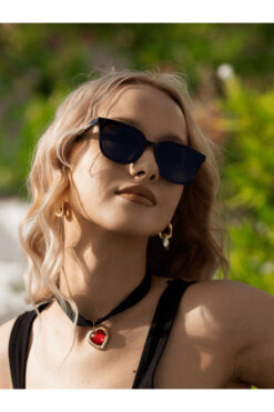 TomyHelf Geometrik Gold Siyah Kemik Çerçeve Siyah Cam Kadın Güneş Gözlüğü LLT01