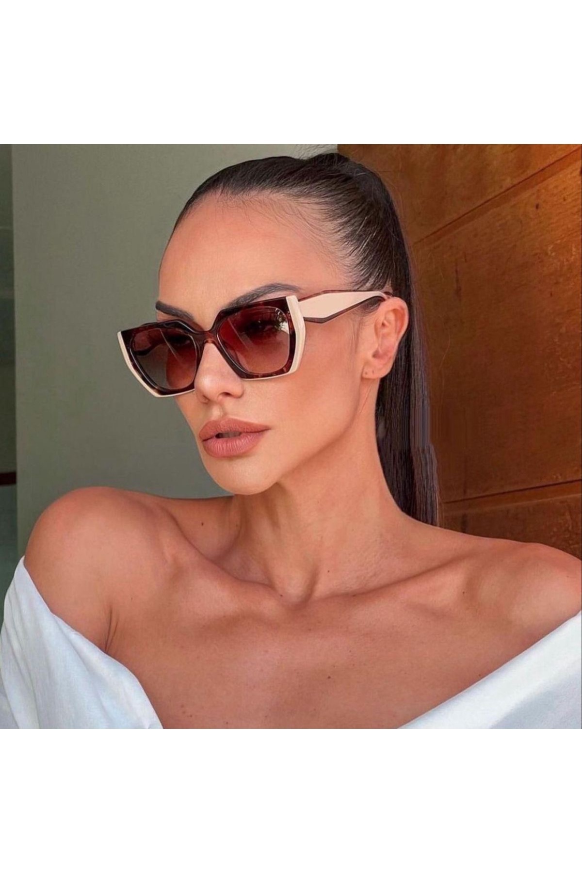 TomyHelf Kahverengi Camlı Desenli Çerçeveli Kadın Güneş Gözlüğü