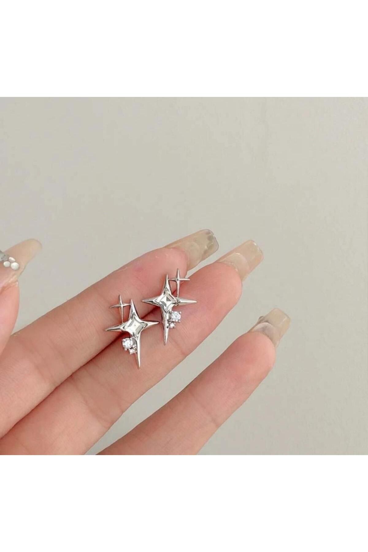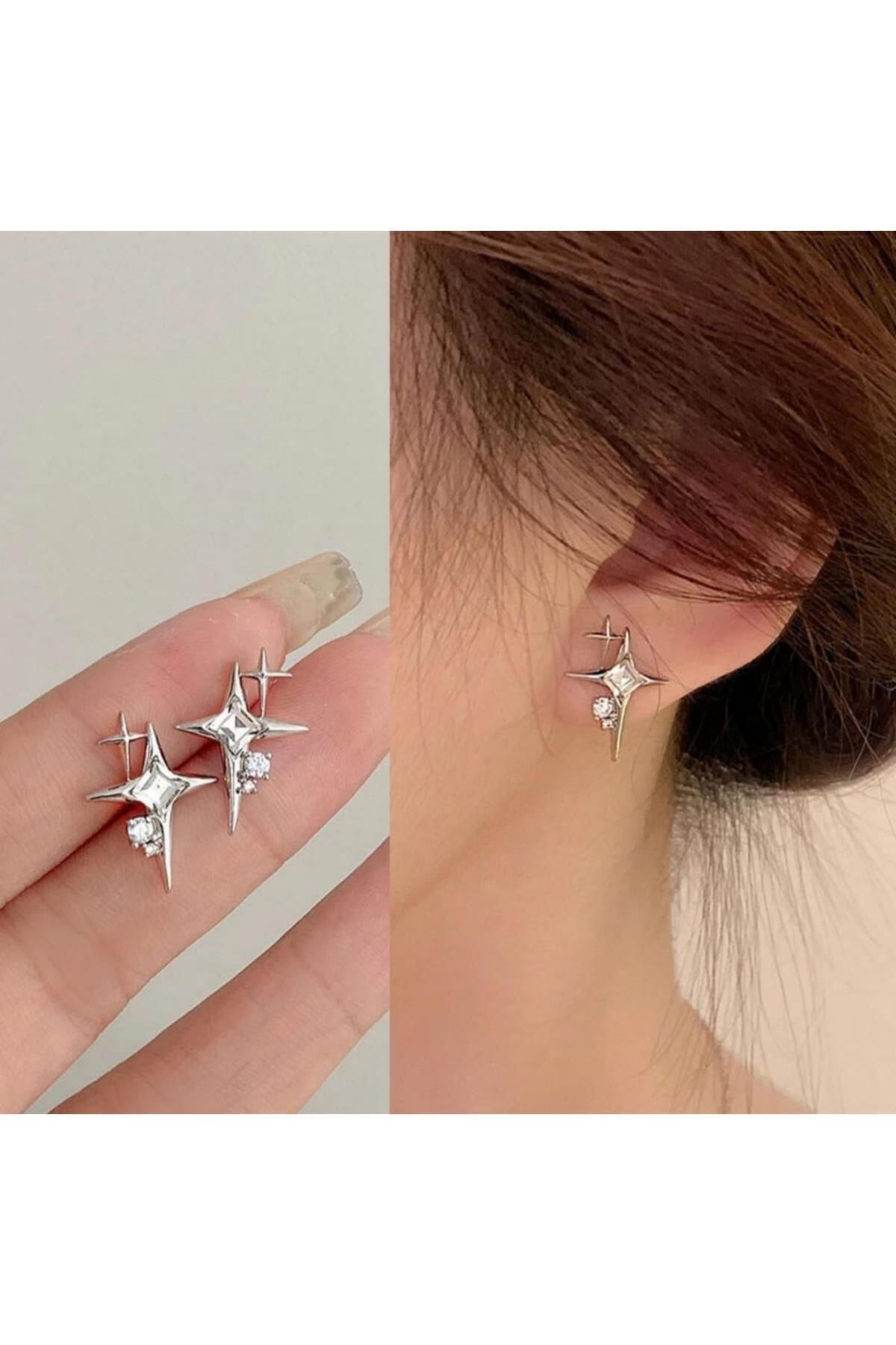 toptanhanem Kuzey Yıldızı Taşlı Tasarım Çelik Gümüş Küpe | Kararmaz Antialerjik Küpe