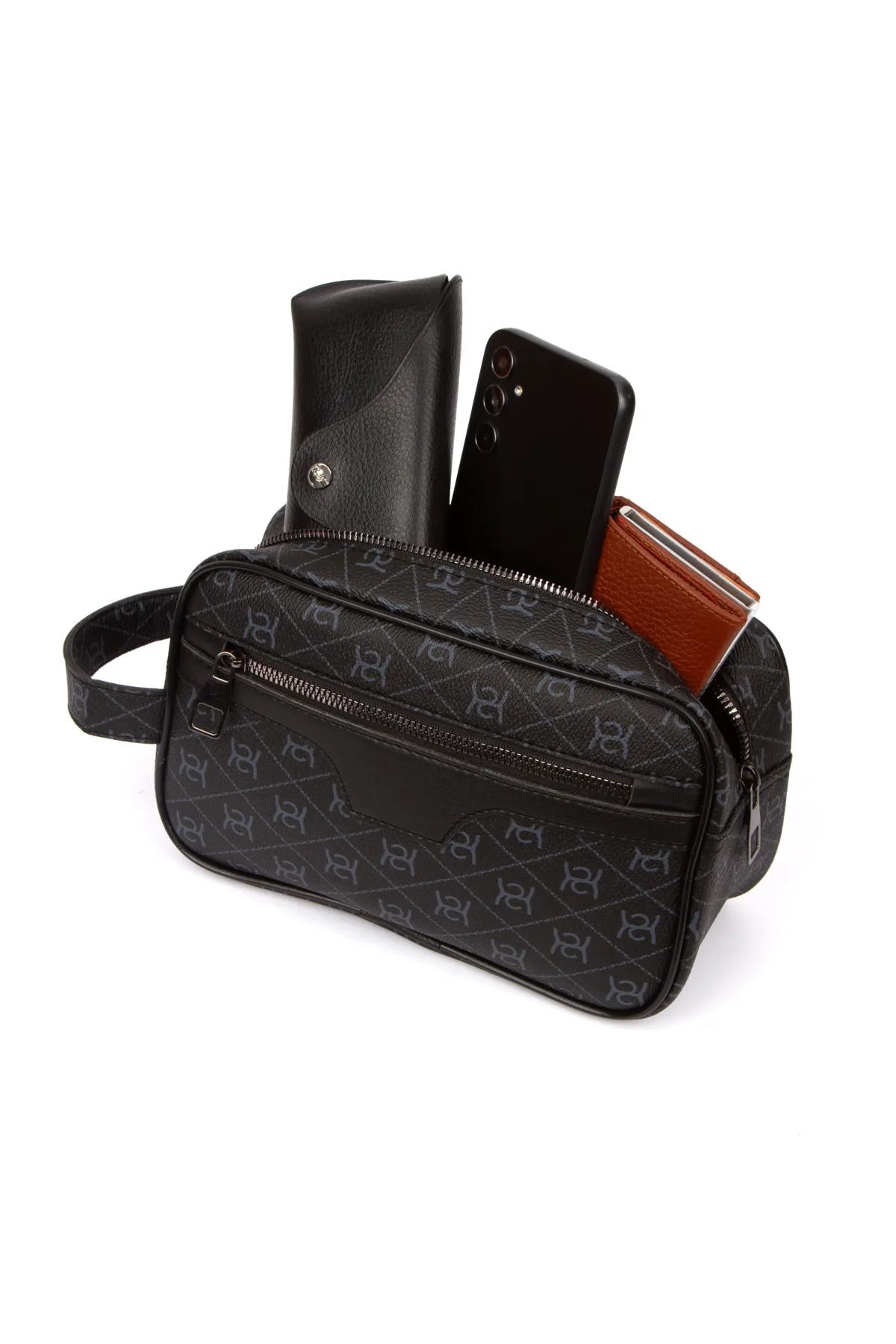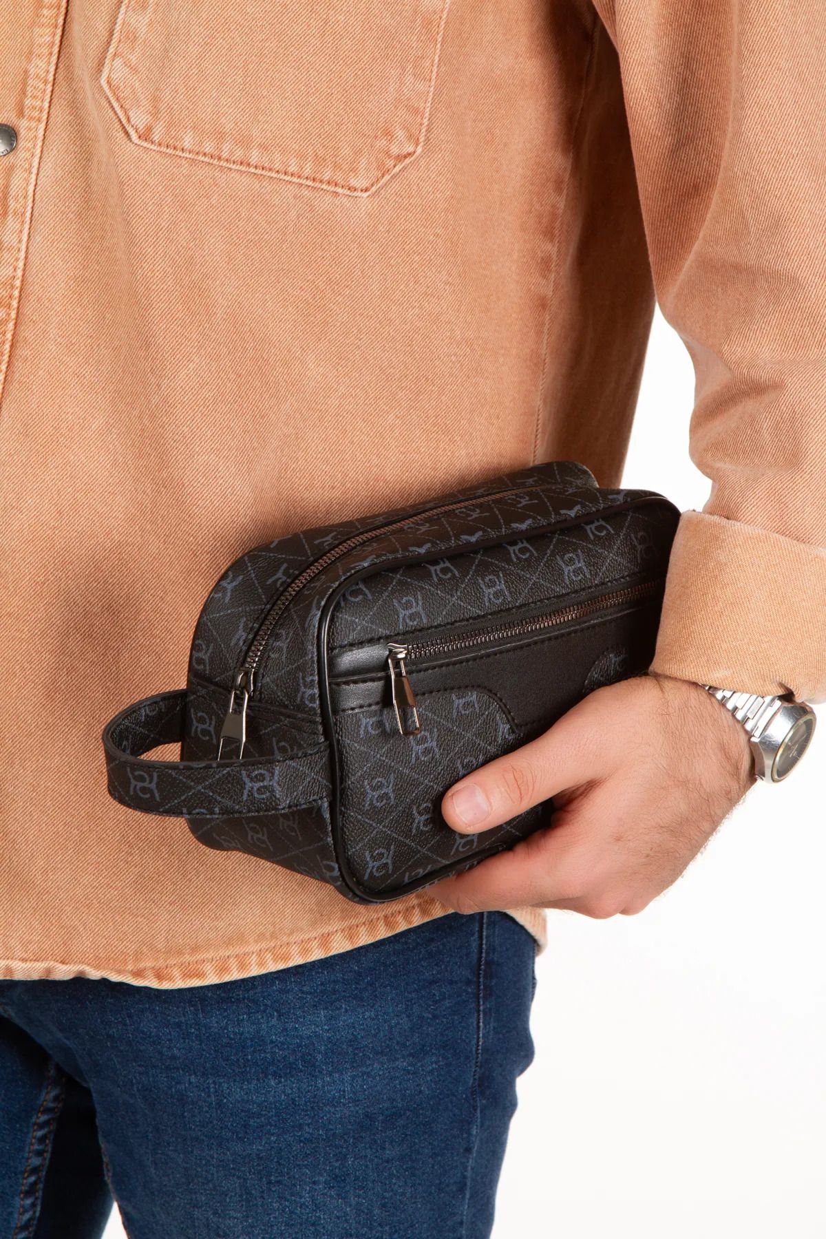 Torz Unisex Siyah Desenli Kumaş Vegan Deri Suya Dayanıklı Elegan Portföy Stil El Çantası