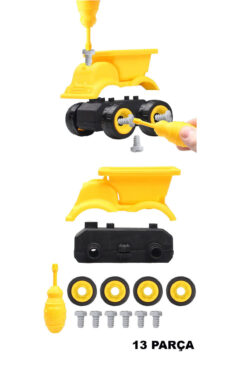 Toyaş Eğitici Sök Tak Oyuncak 2 li İş Makinaları Pilli Matkaplı Tamir Seti Ekskavatör,Kamyon