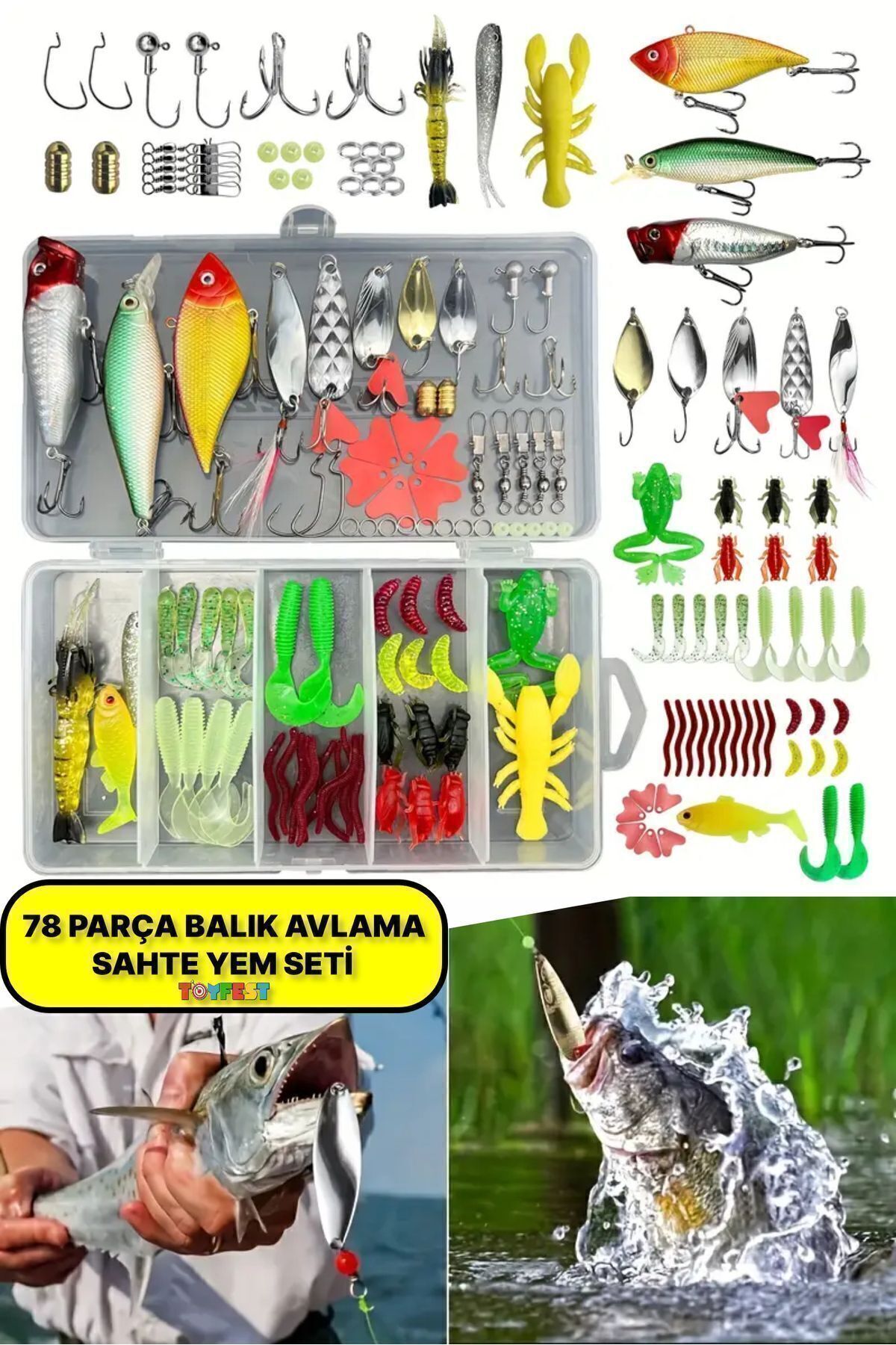 TOYFEST Yapay Olta Yemleri Ve Balık Tutma Aksesuarı Seti 78 Parça – Dikkat Olta Dahil Değildir