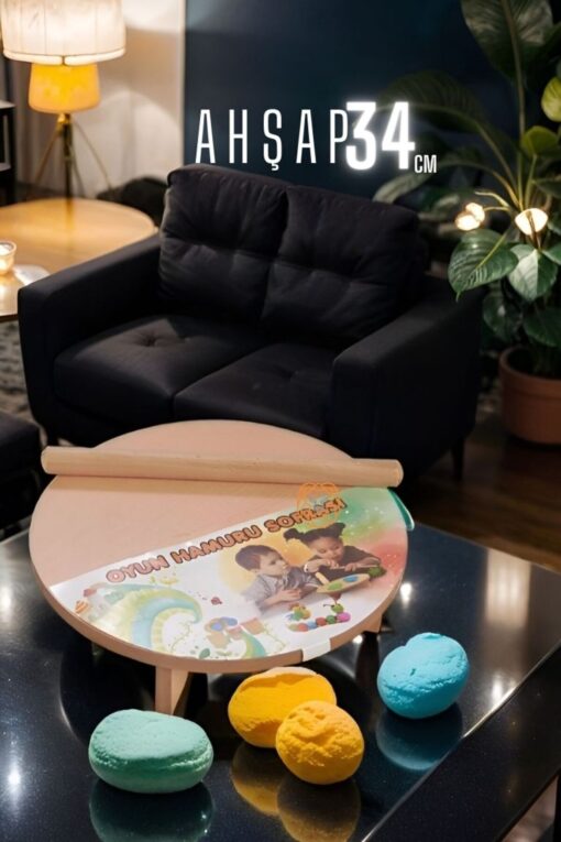 Transformacion Çocuk 34 Cm Ahşap Hamur Açma Masası Mini Oklava Ile Oyun Hamuru Tahtası 714536