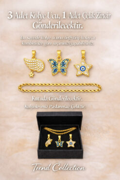 TREND COLLECTİON Değiştirilebilir Kolye Uçlu Gold Paslanmaz Çelik Kolye Seti – 3’lü Kadın Kolye