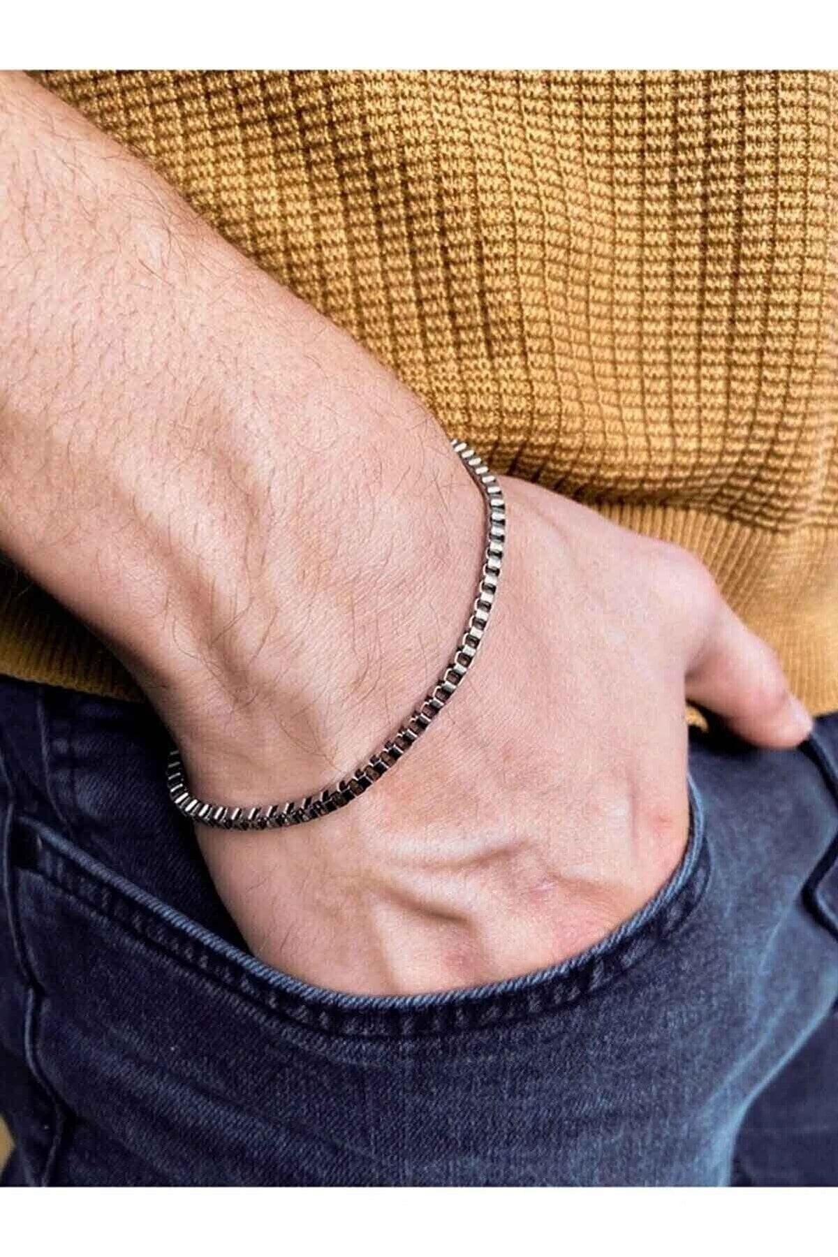 TREND COLLECTİON Küp Model Spor Erkek Gümüş Kaplama Bileklik Zincir