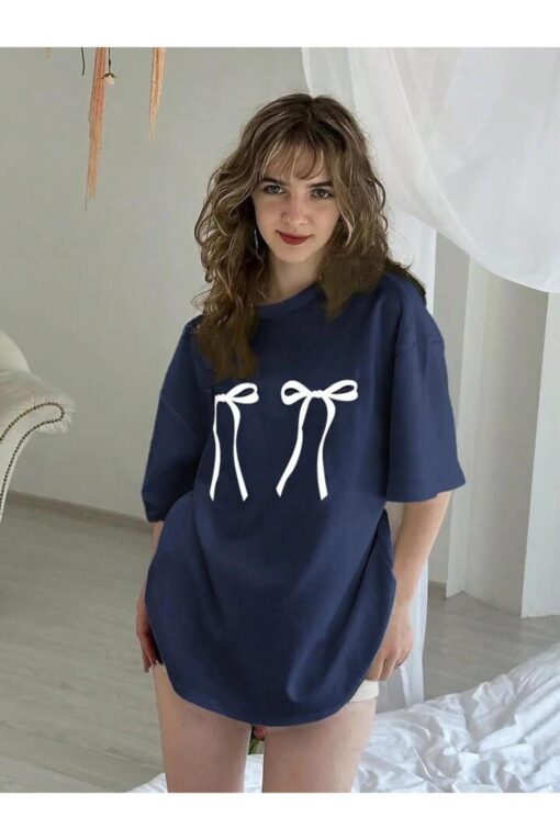 Ana Sayfa » kozmetikara.com » Giyim » Üst Giyim » T-Shirt » trendgar İki fiyonk baskılı lacivert oversize t-shirt