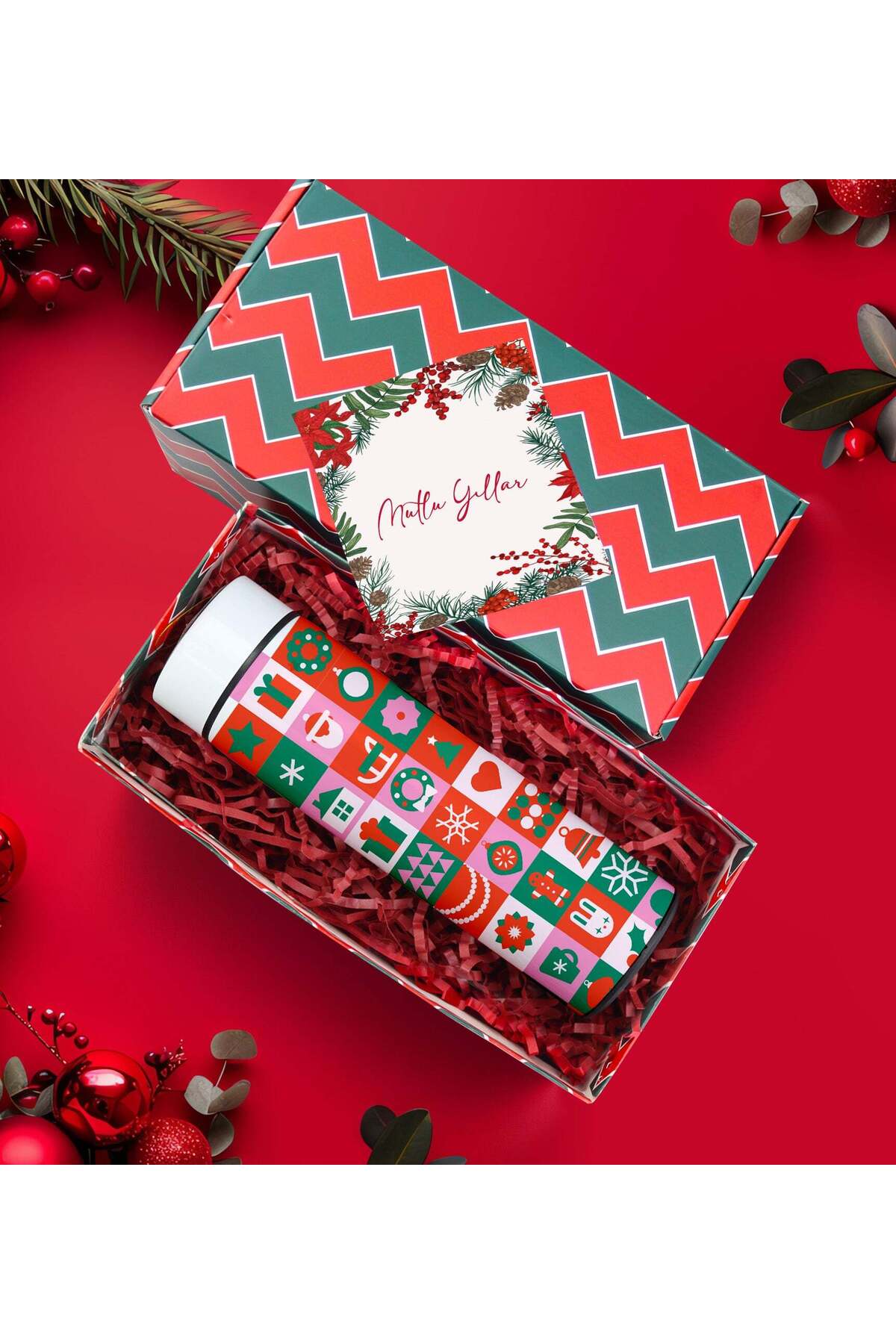 Trendmiya Yılbaşı Baskılı Dereceli Termos