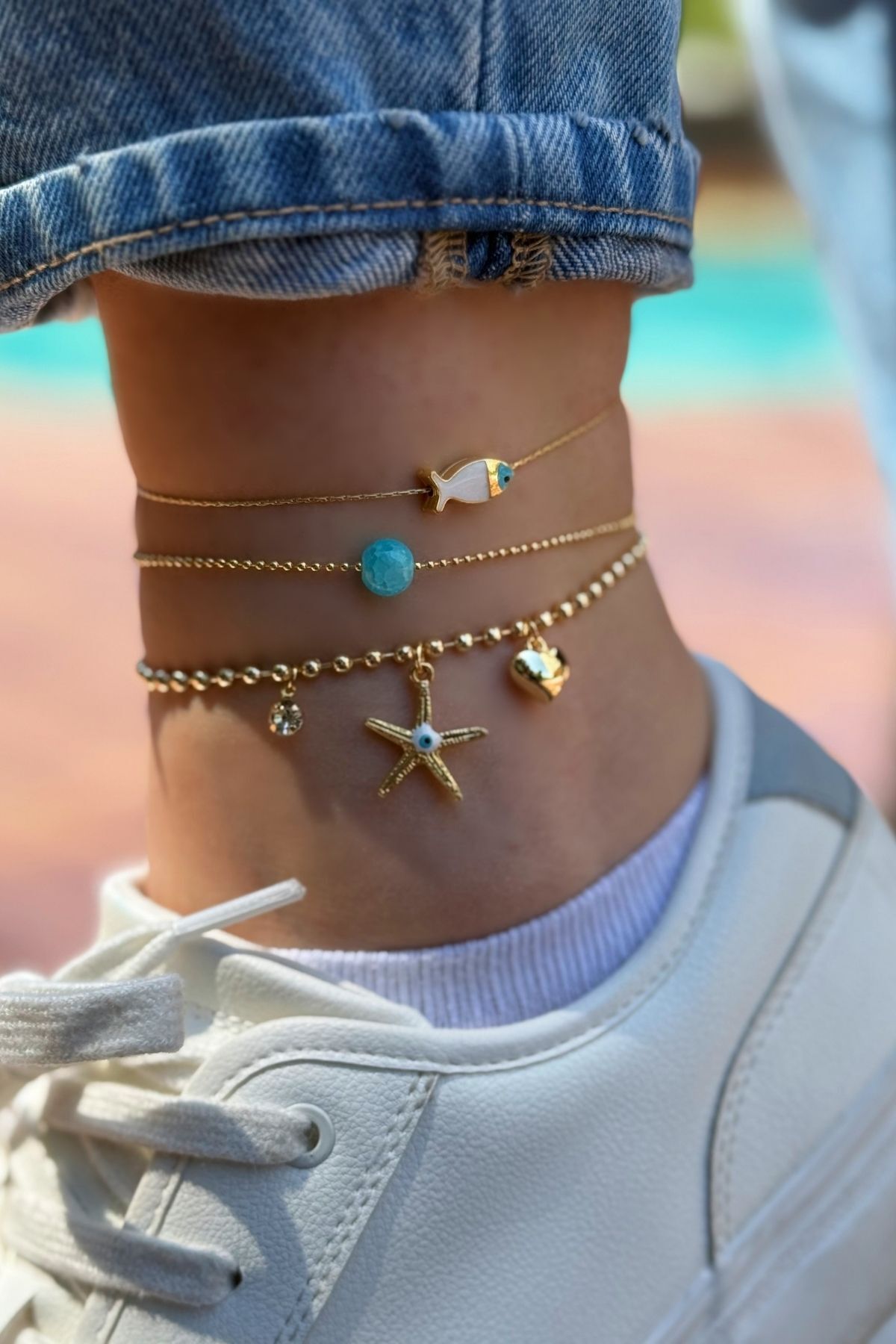 Cinderella Yıldızlı Deniz Kabuğu 7’li Kombin Kadın Halhal – Yazlık Boncuklu Taşlı Halhal