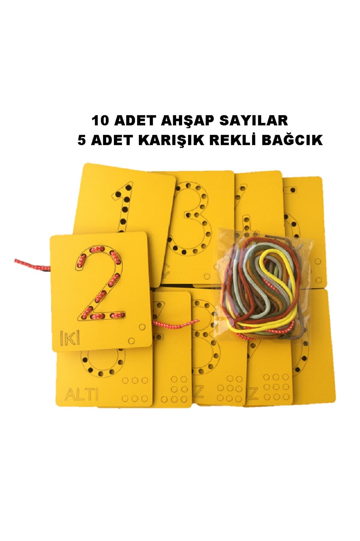 Trendy Toys Eğitici Ahşap Sayılar Ip Geçirme Montessori El Kası Geliştirme