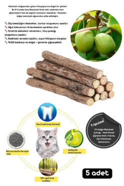 TRİPULAM 5’li Doğal Matatabi Çubuğu – Kedi Nanesi Çiğneme Stick | Catnip, Diş Temizleyici, Rahatlatıcı