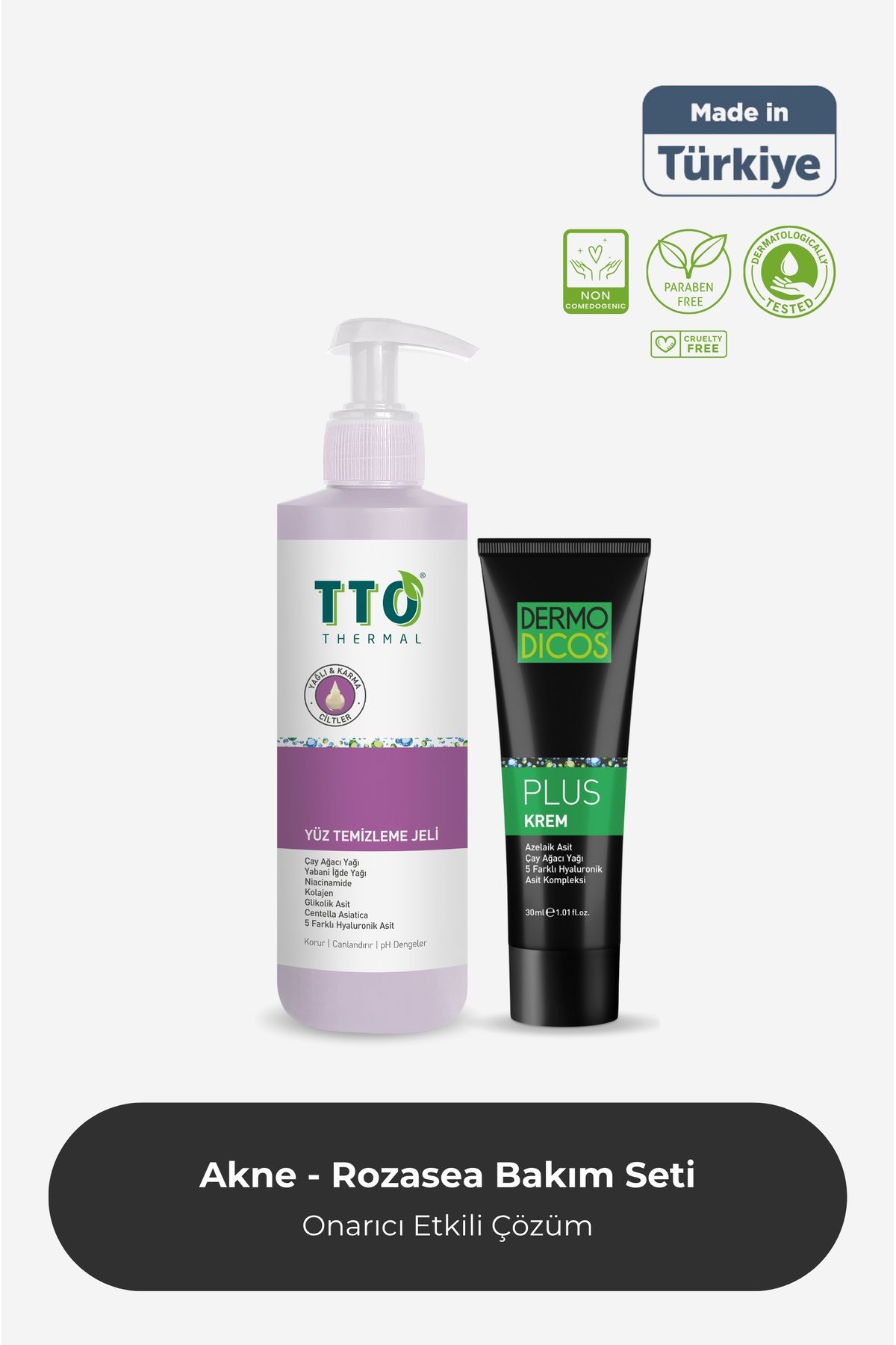 TTO Akne ve Rozasea Bakım Seti Temizleme Jeli Dermodicos Plus