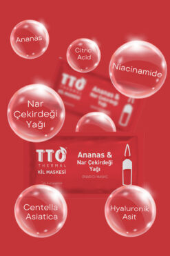 TTO THERMAL Ananas Ve Nar Çekirdeği Yağ İçeren Kil Maskesi ürününü en uygun fiyata kozmetikara.com sitemizden sipariş verebilirsiniz.