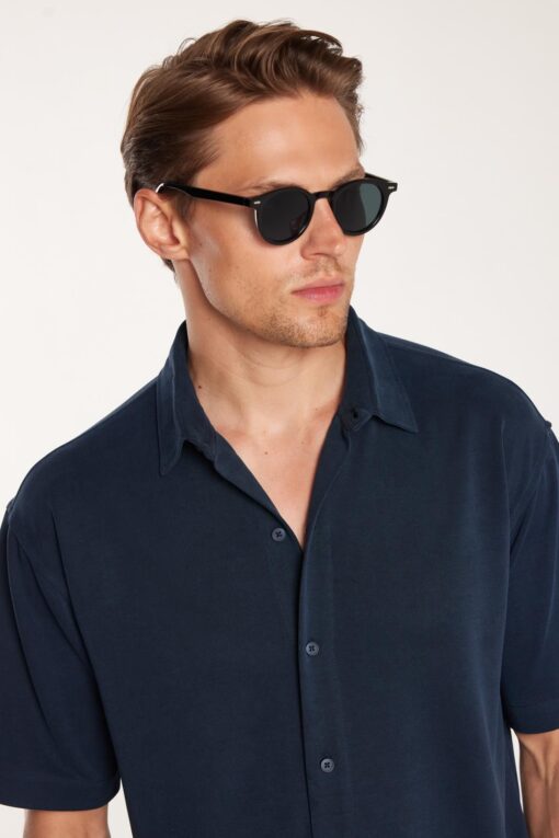 Tudors Erkek Relax Fit Premium Seri Modal Örme Kumaş Rahat Kullanım Kısa Kollu Spor Lacivert Gömlek