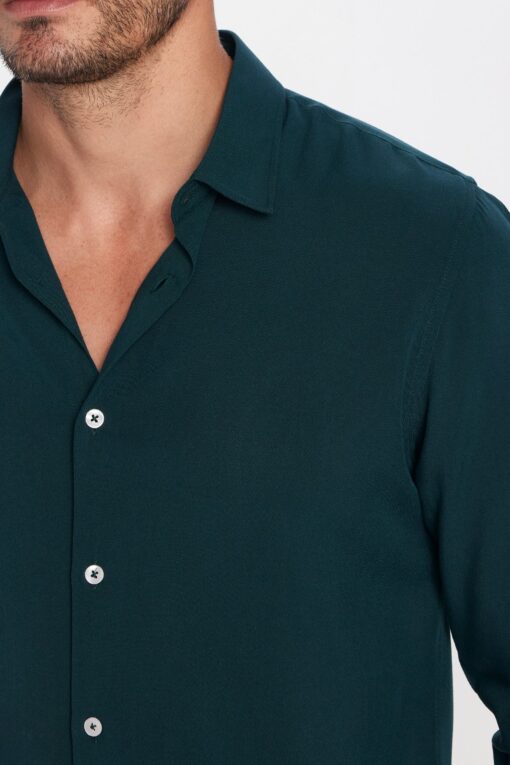 Tudors Slim Fit Uzun Kollu Dar Kesim Dökümlü Viskon Şık Erkek Yeşil Gömlek