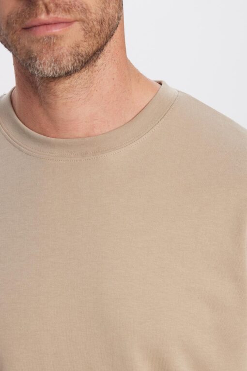 Tudors Unisex Oversize Geniş Kesim %100 Pamuk Yumuşak Dokulu Basic Bisiklet Yaka Bej Tişört