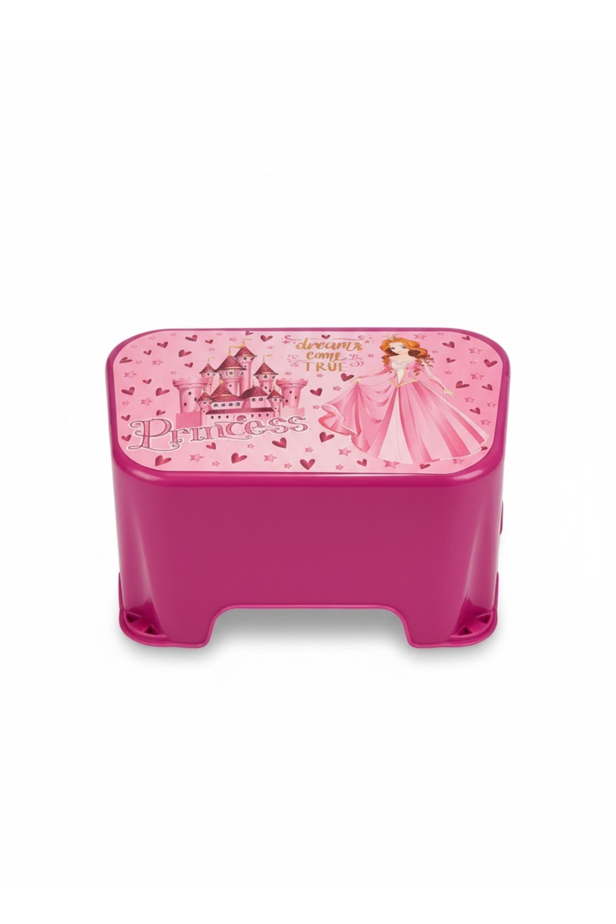 Tuffex Pembe Çocuk Basamağı – Princess Desenli, Kaymaz Ayaklı, Dayanıklı Plastik Adım Taburesi