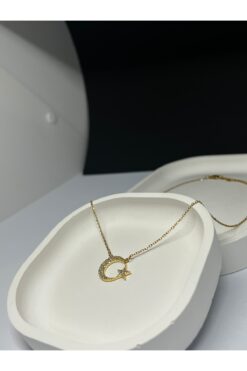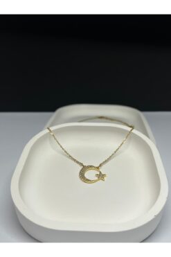 TuQos AY YILDIZ ALTIN RENK ÇELİK TÜRK BAYRAK KOLYE