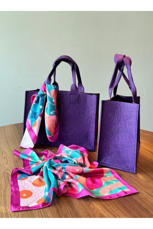 Two Two Fular Hediye Keçe Mor Renk Çanta,omuz Çantası,organizer,el Yapımı,alışveriş Düzenleyici