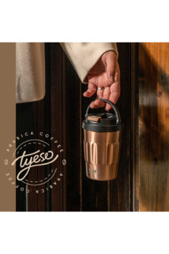 Tyeso Coffe Mug Vakumlu Paslanmaz Çelik Taşıma Kulplu 400 ML Kahverengi