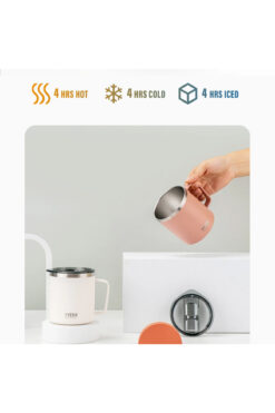 Tyeso Silviya Mug Vakumlu Paslanmaz Çift Duvarlı Termal Kapaklı 400ML Beyaz