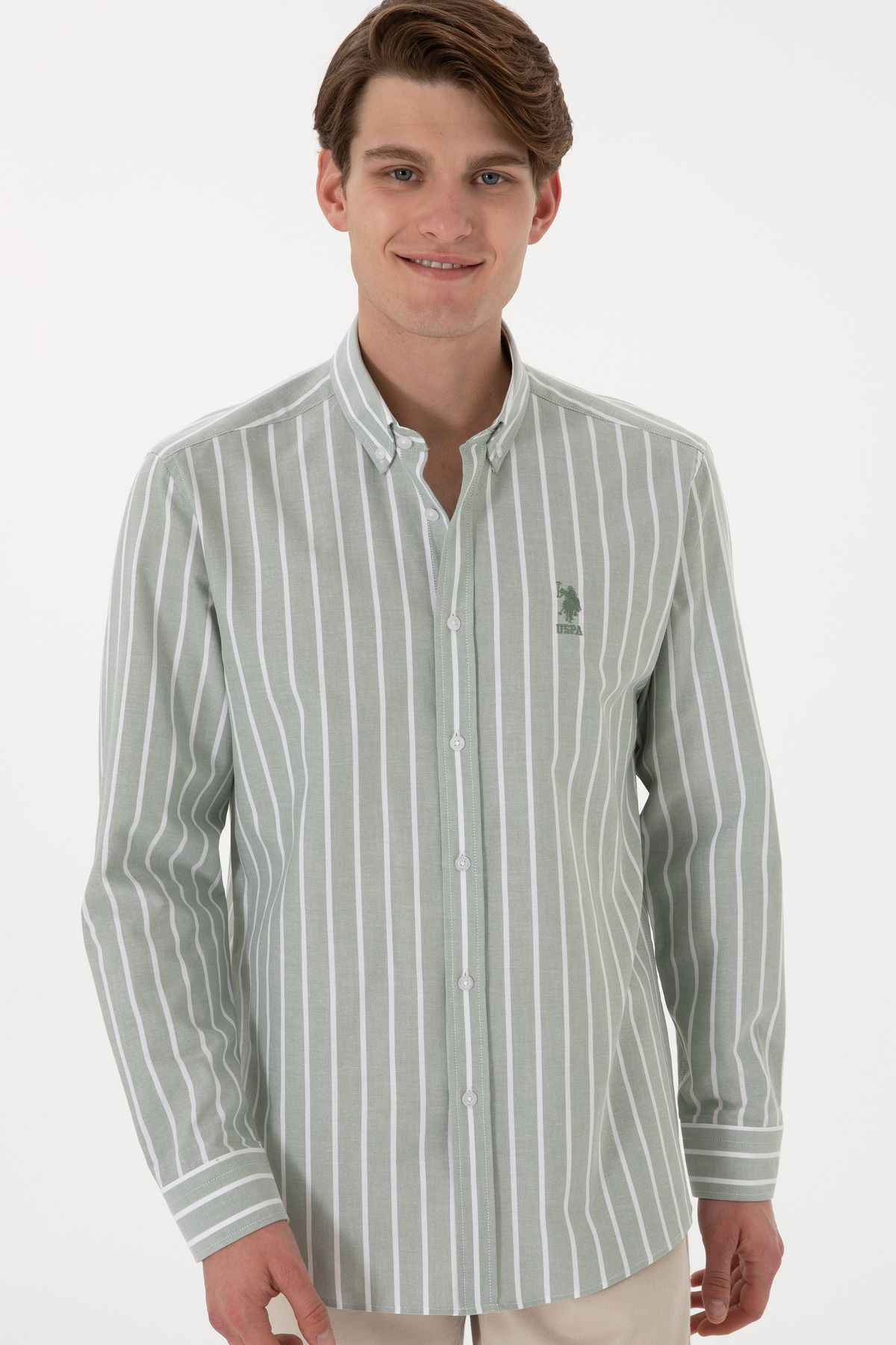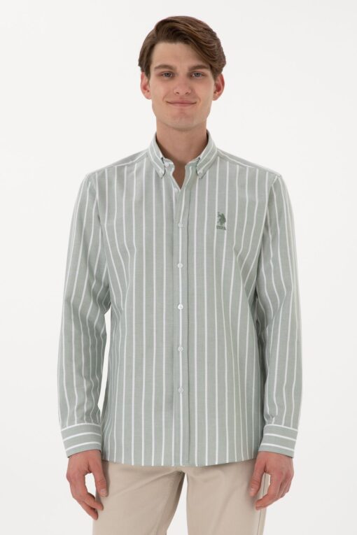 U.S. Polo Assn. Erkek Çizgili Haki Uzun Kollu Gömlek 50306347-vr027