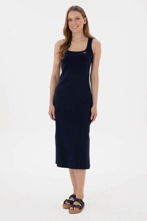 U.S. Polo Assn. Kadın Lacivert Yırtmaçlı Kolsuz Kare Yaka Midi Boy Örme Elbise 50305835-vr033 Fiyatları, Özellikleri ve Yorumları