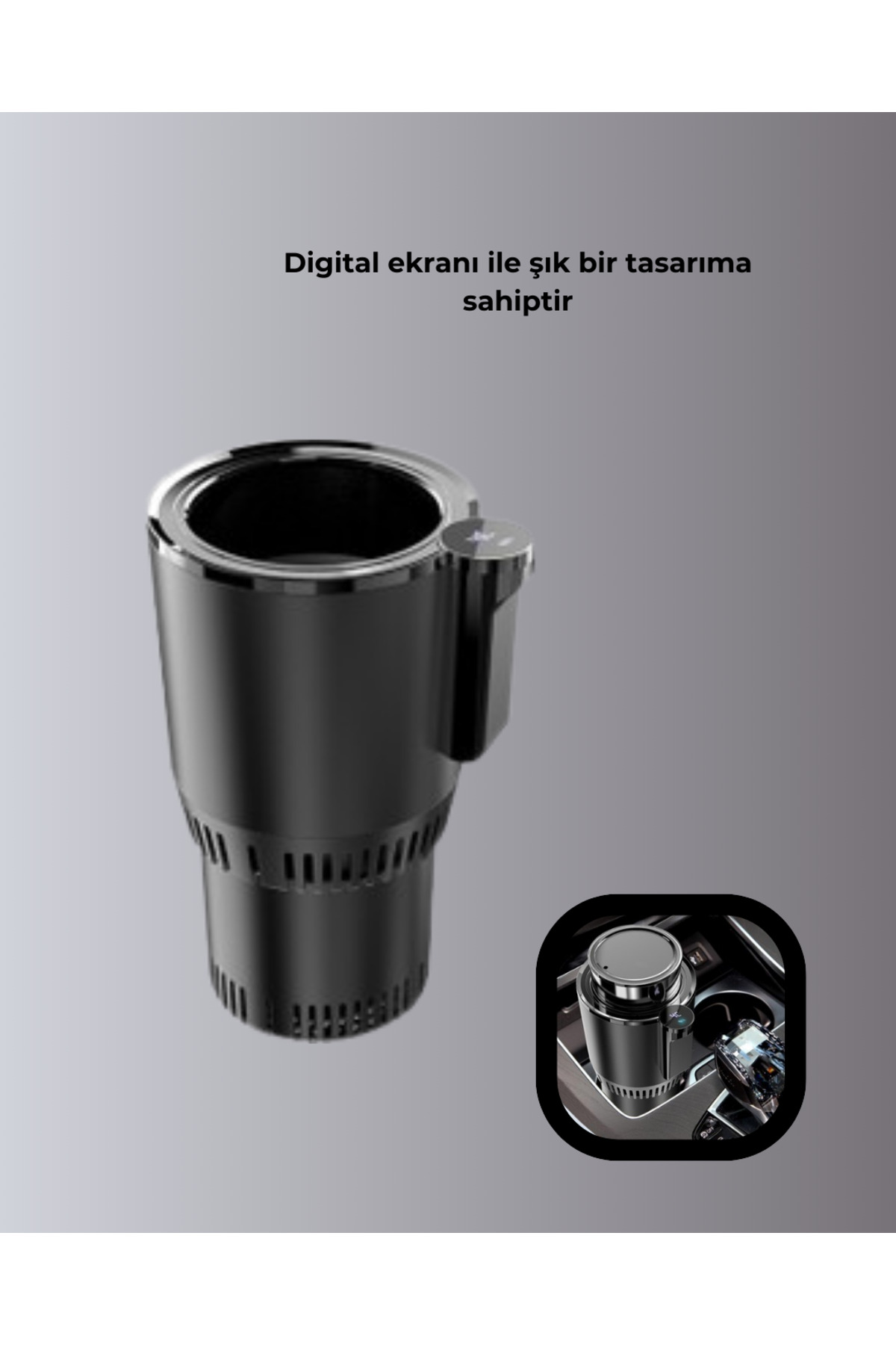 UCUZTEKNO Araç İçi Akıllı Bardaklık Isıtıcı Soğutucu Dijital Ekranlı