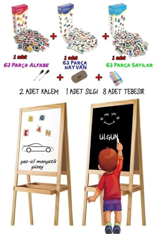 Ulgun Ayaklı Manyetik Yazı Tahtası Çift Taraflı Okul Öncesi 189 Magnet Kalem Silgi Ve Tebeşir