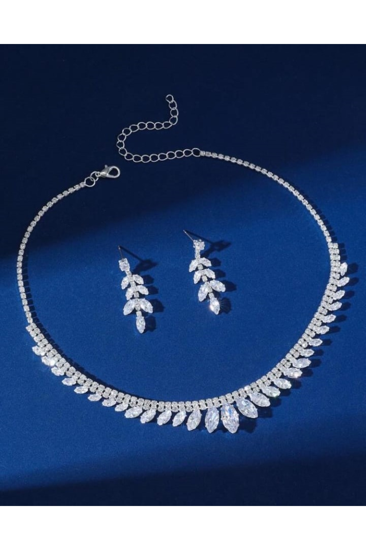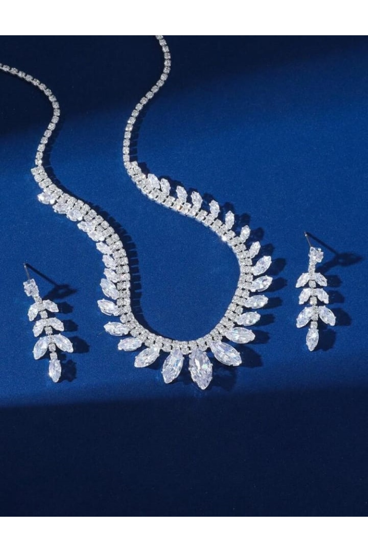 Ümaks Silvers Zirkon Taşlı Yaprak Model Kolye Küpe Seti Zarif Düğün Takı Seti Kına Takı Seti Nişan Takı Seti