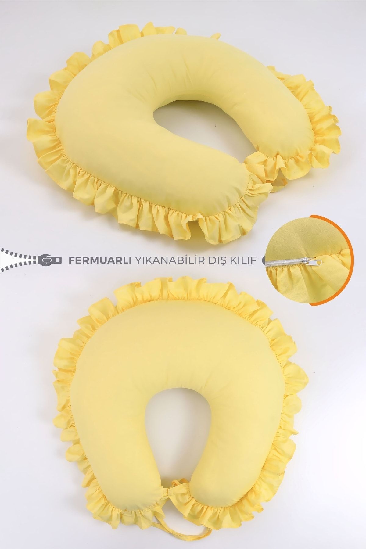 Umaybebek Emzirme Yastığı Minderi – %100 Pamuk – Sarı Fırfırlı