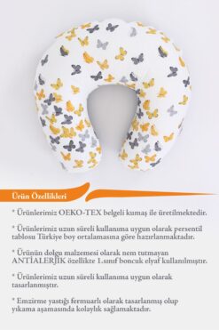 Umaybebek Emzirme Yastığı Minderi Pamuk Kumaş – Sarı Gri Kelebek