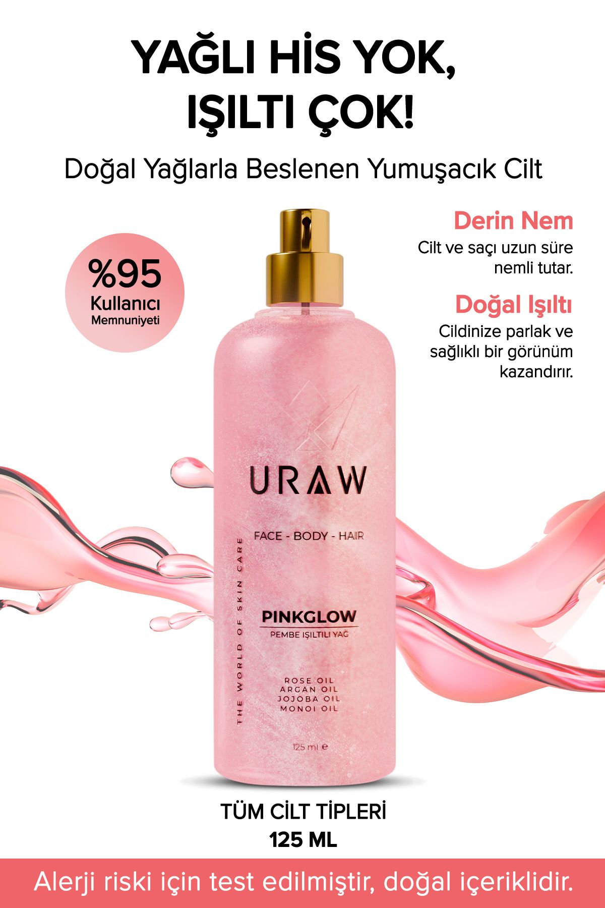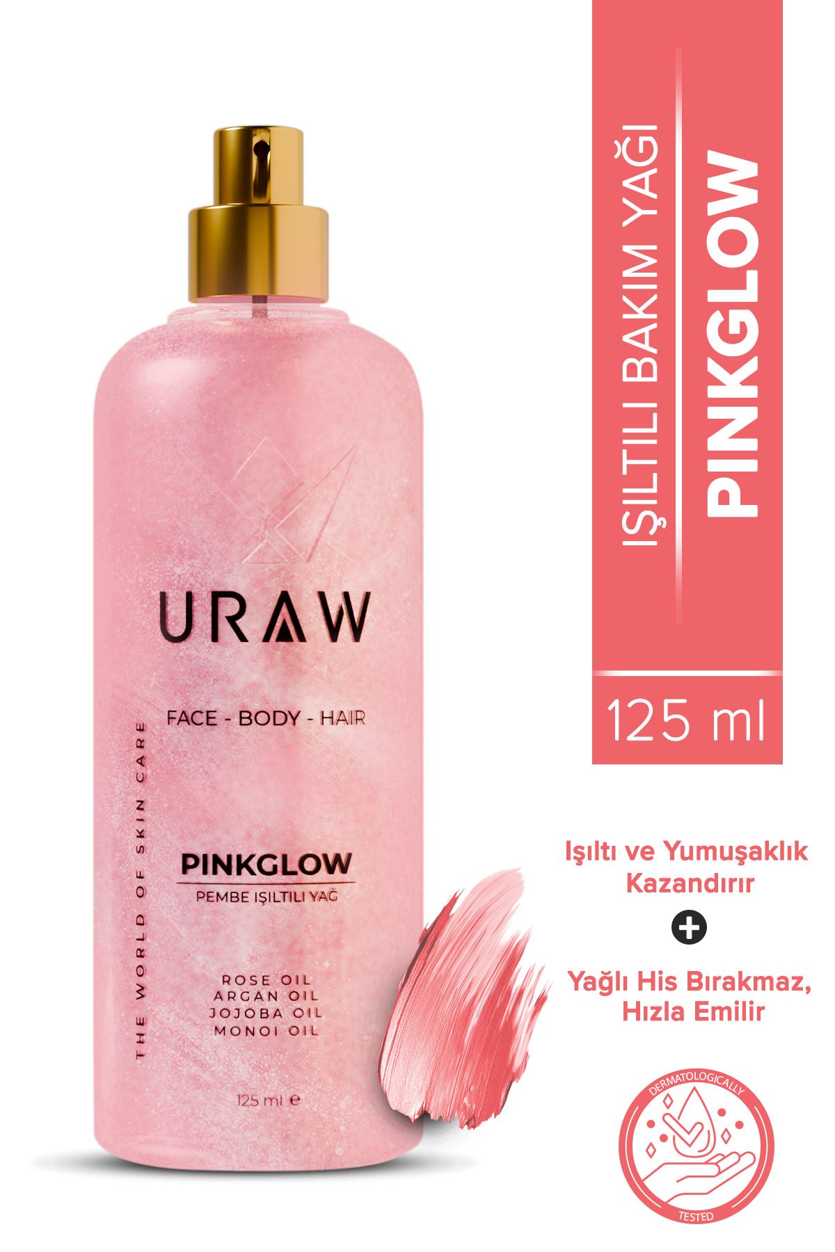 Uraw Pink Glow Pembe Işıltılı Yağ | Yüz, Vücut ve Saç İçin Çok Amaçlı Bakım Yağı