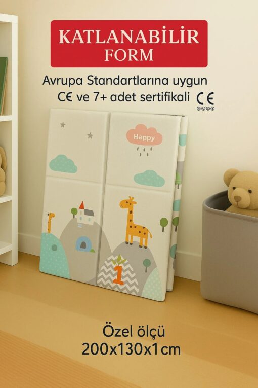 Urrenn ÖZEL Katlanabilir Çocuk Bebek Oyun Matı Oyun Aktivite Halısı – 200x130x1 cm – YENİ