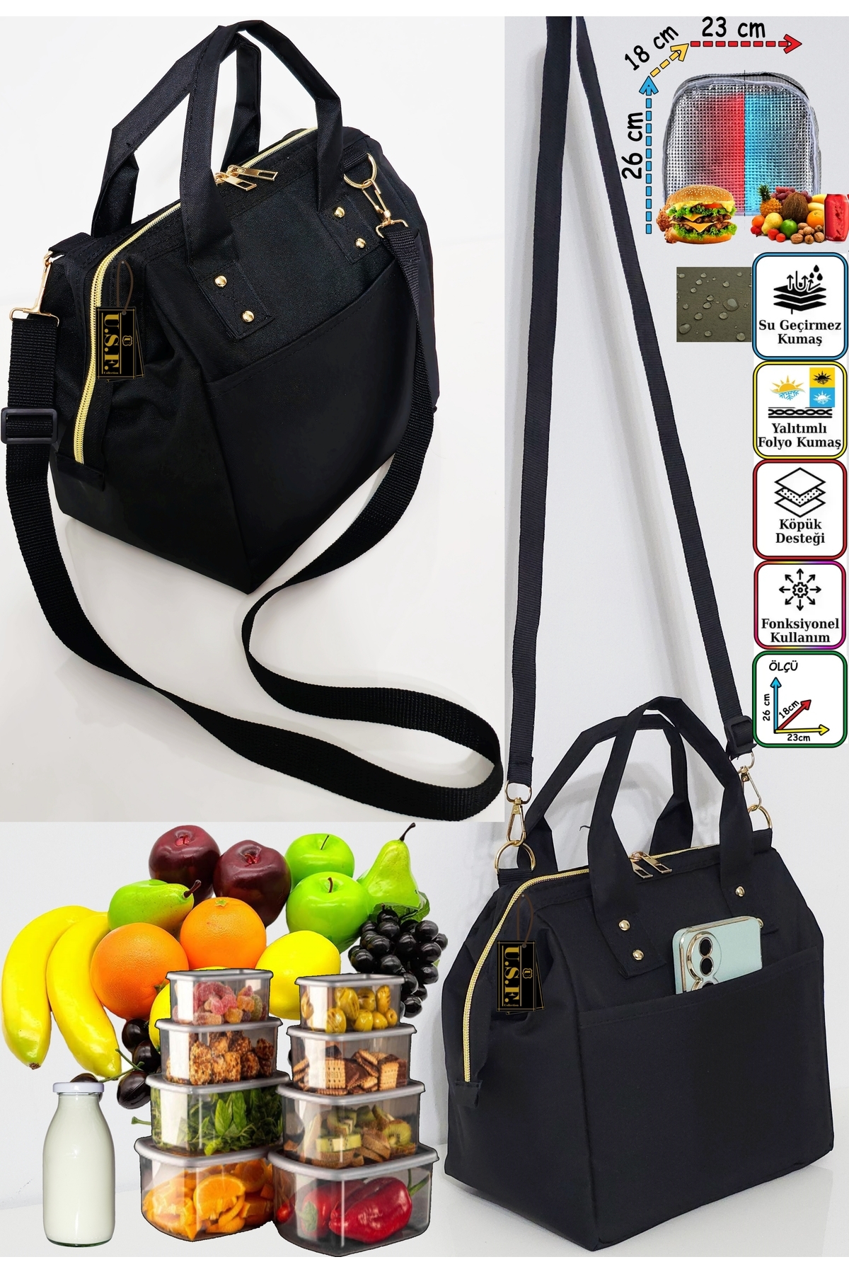 USF Sıcak, Soğuk Isı yalıtımlı Termal Termoslu Yemek, Mama, Beslenme, Gıda için Askılı Taşıma Çantası ürününü en uygun fiyata kozmetikara.com sitemizden sipariş verebilirsiniz.
