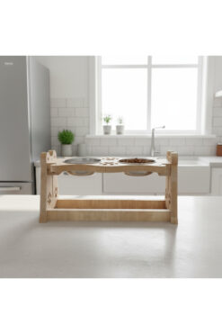 hural ahşap dekorasyon Yüksekliği Ayarlanabilir Ahşap Standlı Mama ve Su Kabı