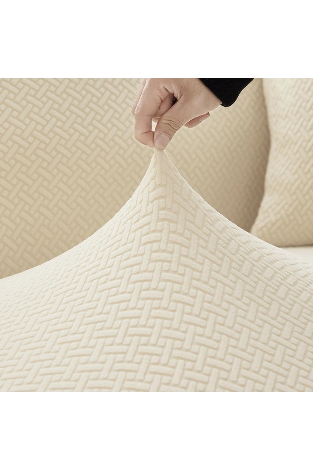 HaNemCe Likrali Lastikli Geçirmeli welsoft koltuk örtüsü koltuk kılıfı zikzak desen (ürün 1 adettir) krem