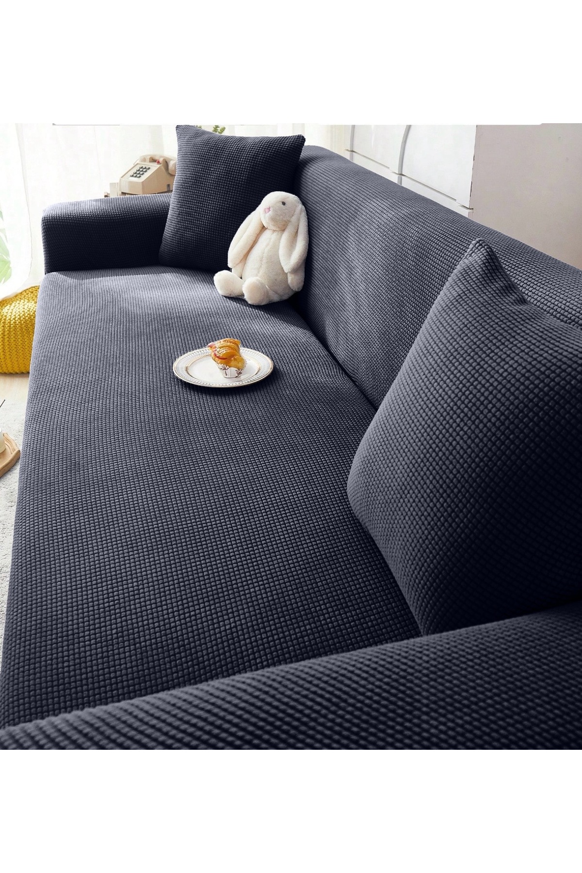 uzhanem Likrali Streç Lastikli Esnek Yikanabilir Kare Desen Üç Kişilik Kotuk Örtüsü Koltuk Kılıfı