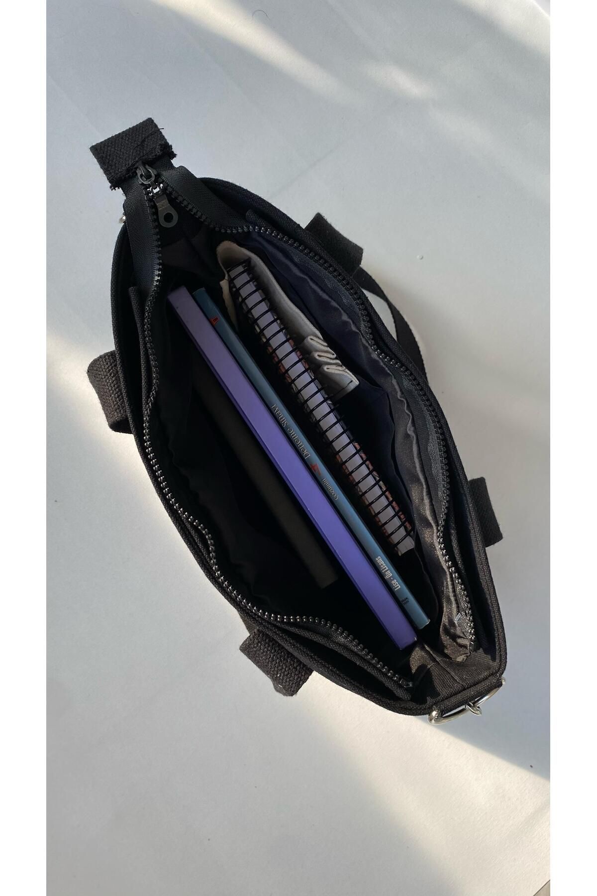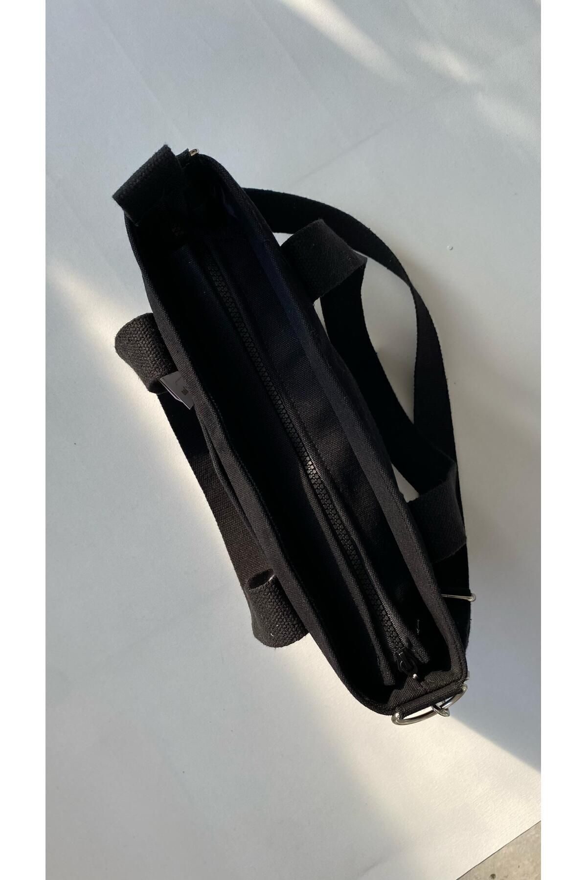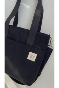 – Günlük kullanım için ideal, casual tarzıyla her ortama uyum sağlayan siyah kolej kanvas çanta