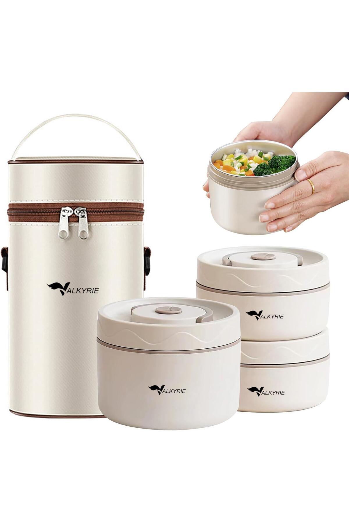 valkyrie 3 Gözlü Paslanmaz Çelik Isı Yalıtımlı Yemek Kabı Seti Çantalı 304 Steel 2 X 420ml 550ml